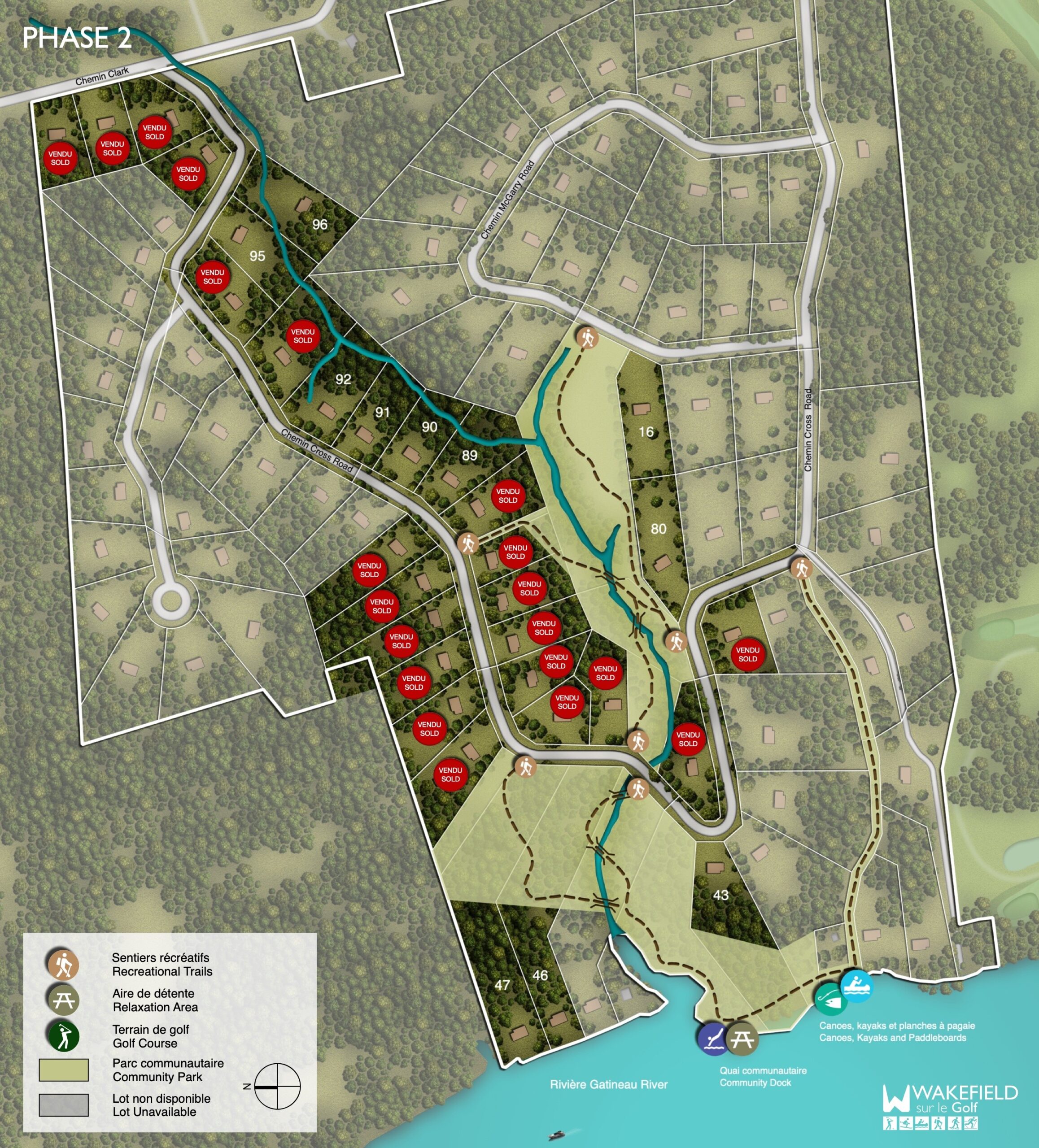 Bordé par la rivière Gatineau et le golf Mont Cascades, Wakefield sur le Golf offre une soixantaine de lots d’une acre chacun répartis sur un domaine de plus de 150 acres. Ce milieu de vie, créé en harmonie avec les meilleures pratiques urbanistiques, offre des sentiers récréatifs praticables à l’année, un parc central ainsi qu’un parc riverain comportant un quai communautaire et une aire de détente. Le tout est à l’usage exclusif des résidents de Wakefield sur le Golf.